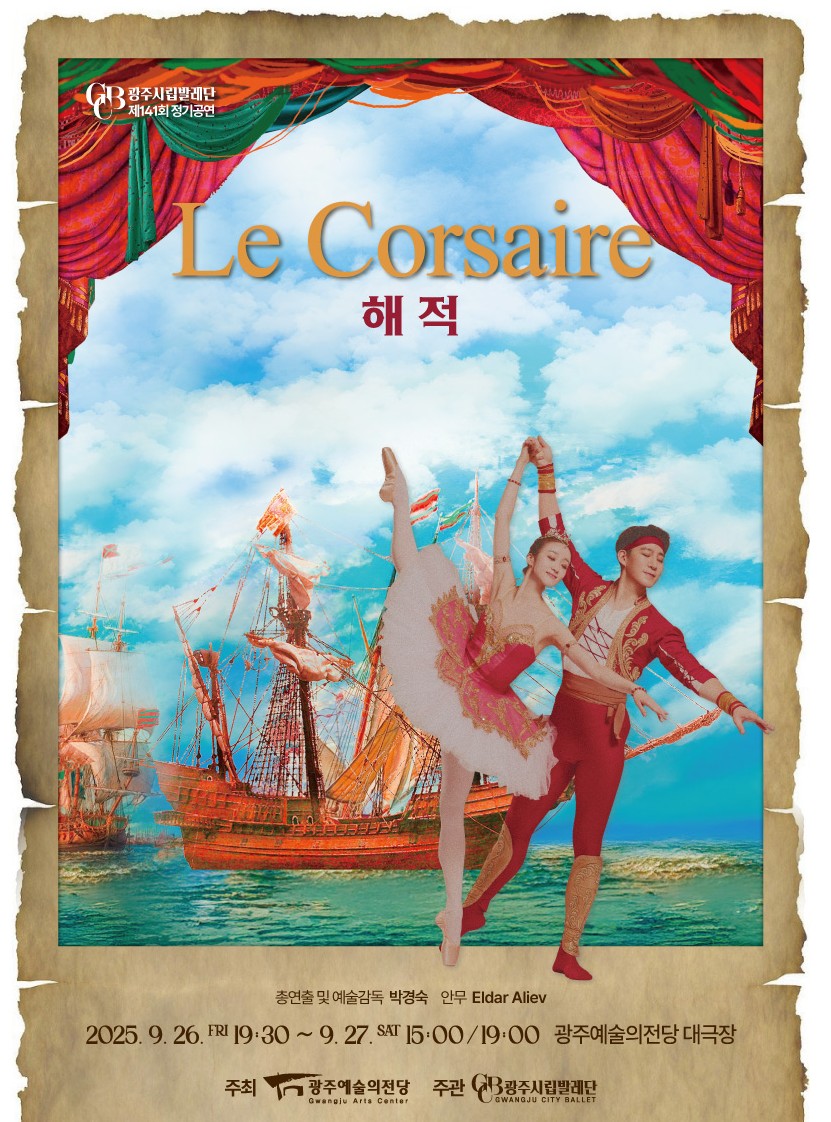 사랑과 배신, 모험의 서사가 빠른 전개 속에 펼쳐지며, 화려한 군무와 파드되, 그리고 극적인 무대 연출이 어우러져 관객을 압도합니다. 또한 광주여성필하모닉오케스트라의 라이브 연주로 극에 생생한 현장감을 더할 예정입니다.